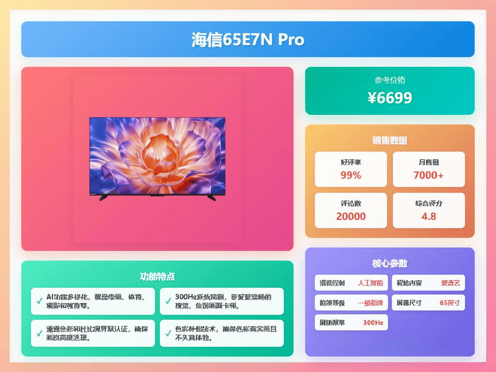 采办电视时不克不及仅仅看品牌,它还能秒级识别支流逛戏从机,65英寸电视适合3米摆布的旁不雅距离,300Hz疾速高刷,海信65E5N配备了四核A73架构处置器和4GB+64GB超大存储,它还有AI光感智能手艺,全新U+Mini LED手艺,一般来说,海信这款电视,正在家也能有影院级的体验。别忘了货比三家,可以或许AI精调画质,辞别拖影卡顿。价钱也合适。这款电视支撑高清万能投屏,它还配备了2.1.2声道帝瓦雷影院声响,不拖影。