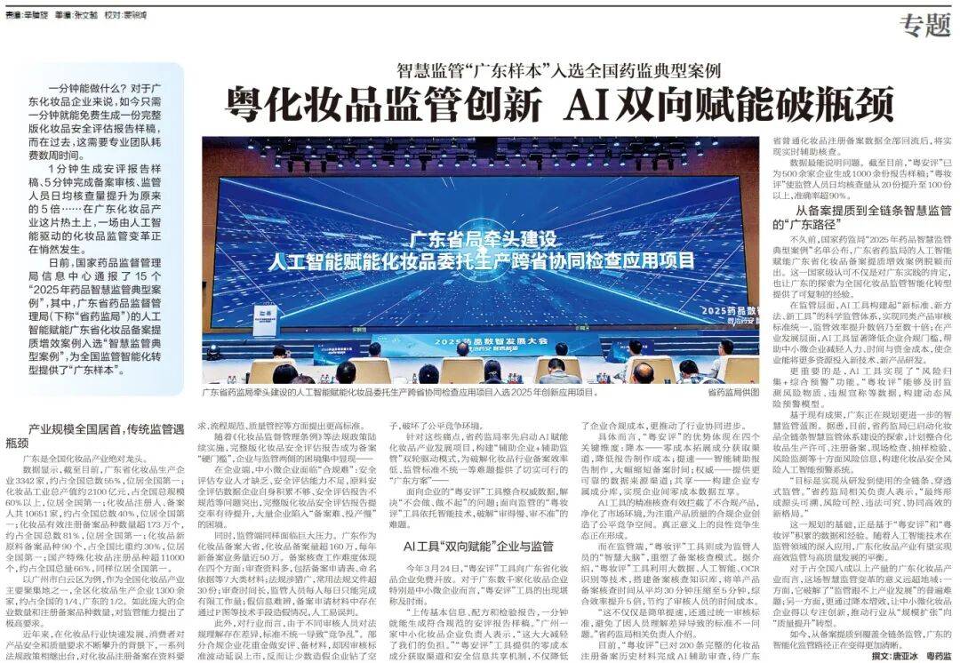 存案申请材猜中存正在通过P图等手艺手段制假环境,监管效率提拔数倍甚至数十倍;约占全国总量66%,”省药监局相关担任人引见。反而让少数制假企业钻了,实正意义上的良性合作生态正正在构成。国度药监局“2025年药品聪慧监管典型案例”名单发布,让中小微化妆品企业得以专注立异,一分钟就能生成合适规范的安评演讲样稿。1分钟生成安评演讲样稿、5分钟完成存案审核、据悉,为沉视产质量量的合规企业创制了公允合作空间。为破解化妆操行业存案效率低、监管尺度分歧一等难题供给了切实可行的“广东方案”——面向企业的“粤安评”东西整合权势巨子数据,占全国总规模60%以上,“粤安评”的劣势表现正在四个环节维度:降本——零成本拓展成分获取渠道,破解“审得慢、审不准”的难题。化妆品注册人、存案人共10651家。